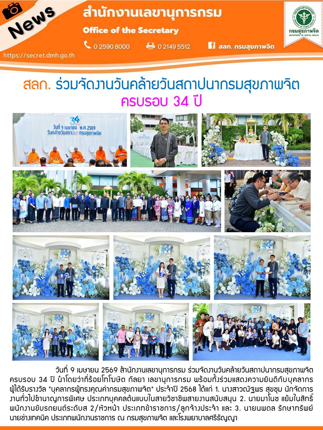 สลก. ร่วมจัดงานวันคล้ายวันสถาปนากรมสุขภาพจิต ครบรอบ 34 ปี