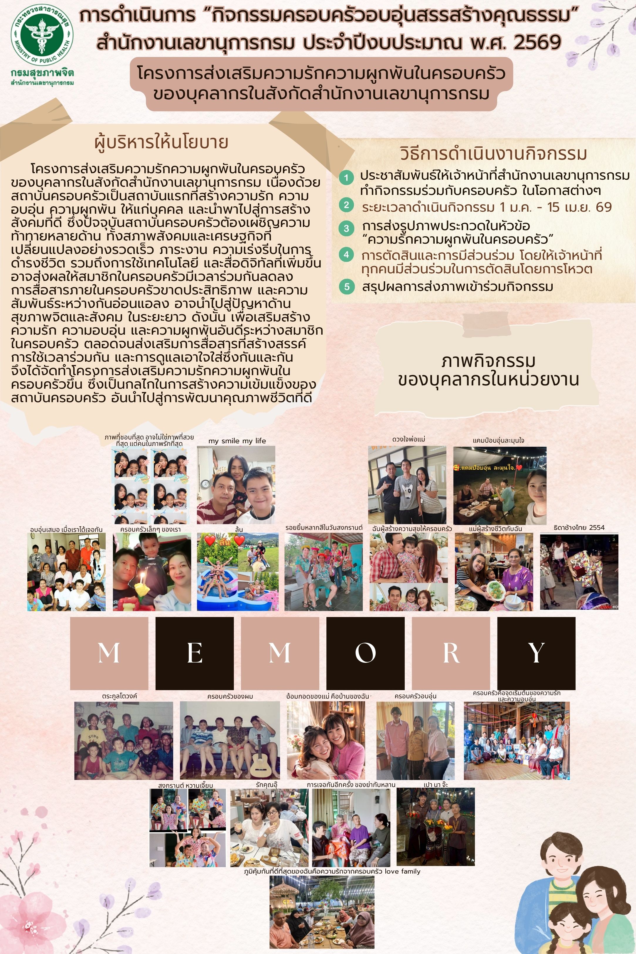 การดำเนินการ “กิจกรรมครอบครัวอบอุ่นสรรสร้างคุณธรรม” สำนักงานเลขานุการกรม ประจำปีงบประมาณ พ.ศ. 2569